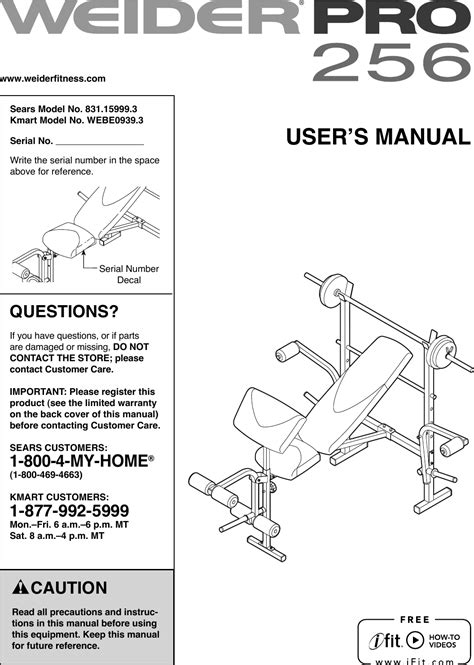 Download weider pro 256 manual PDF